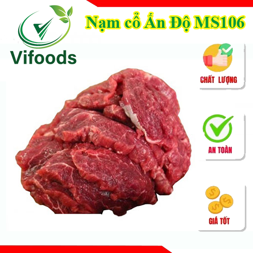 Nạm cổ trâu mã 106 Ấn Độ hay còn gọi là Fore Quarter, đây là thịt vụn được lọc ra từ các phần thịt có vị trí chạy dọc hai bên đầu từ cổ, vai đến ức trên thân con trâu. Nạm cổ trâu có đặc điểm nhiều nạc, xen lẫn ít gân và cơ, vì vậy phần thịt này khá dai.